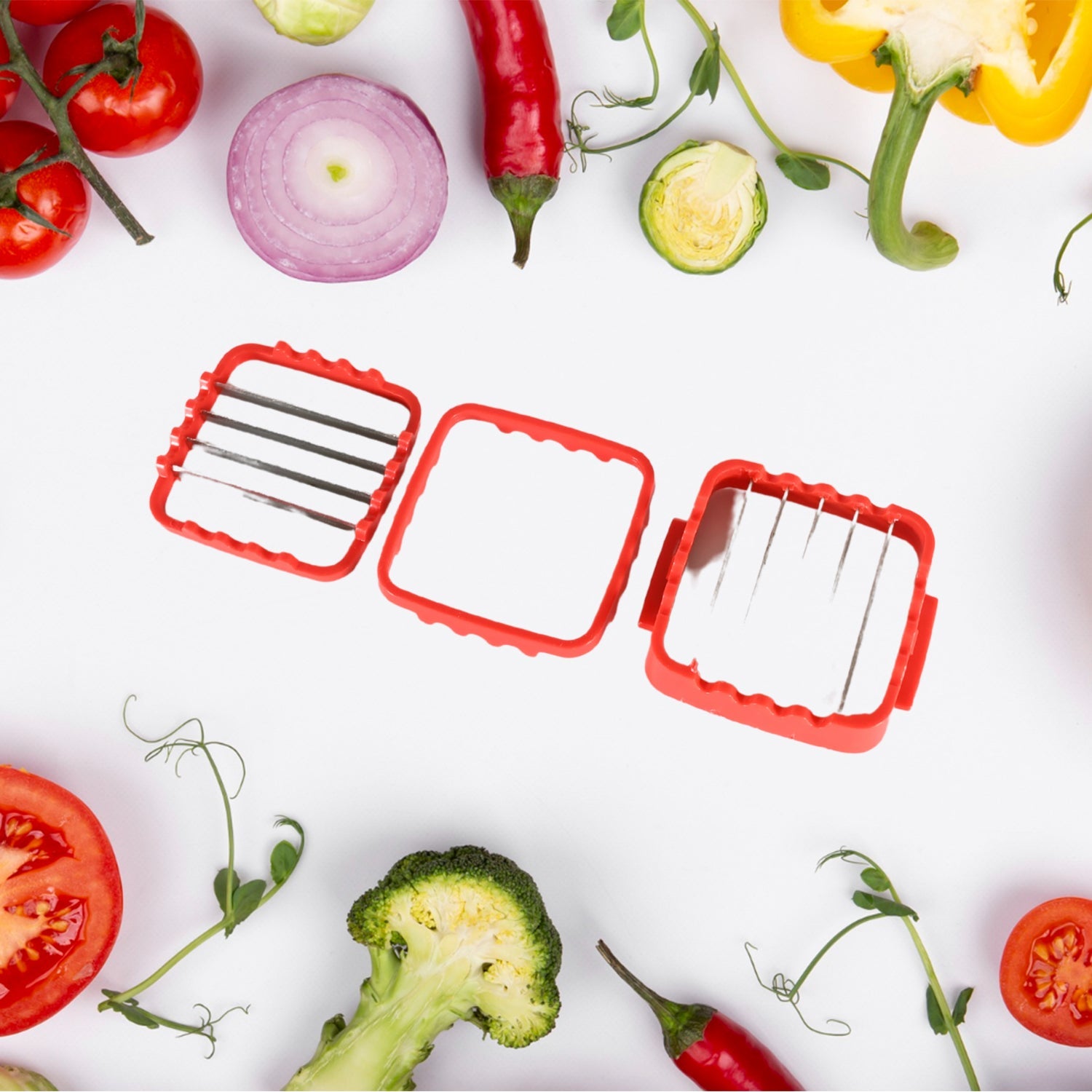 The smallest of all can be operated with one hand and thanks to its compact size, it is ideal for on the go. Thick slices, thin slices, cubes, pins and sixth! Cut directly into the pot, pan or bowl.