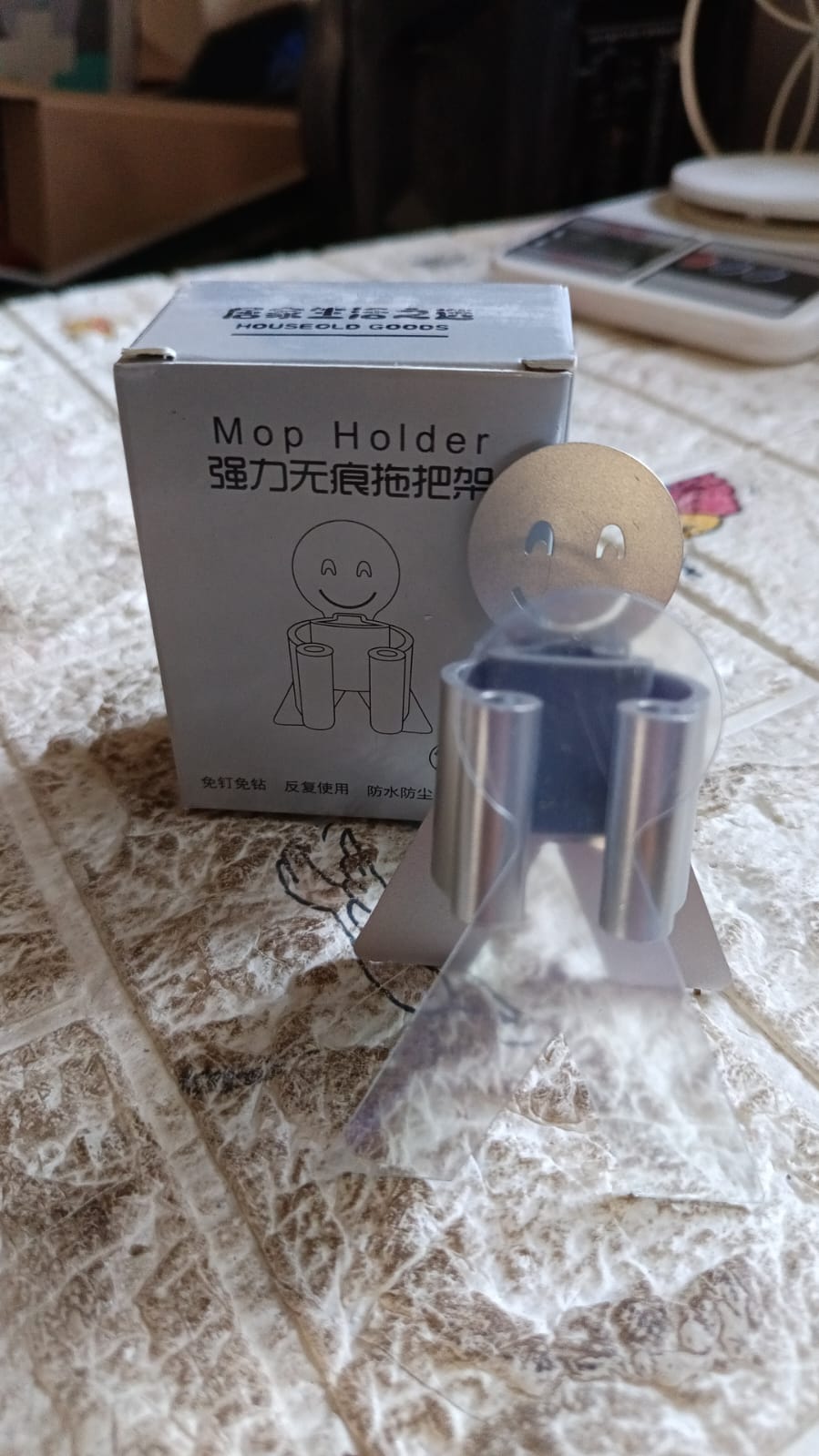 Smile Face Wall Mounted Brush & Broom Organize Holder, Hanger Storage Rack Kitchen Clip Seamless Mop Hook with Mounted Hanging (1Pc)