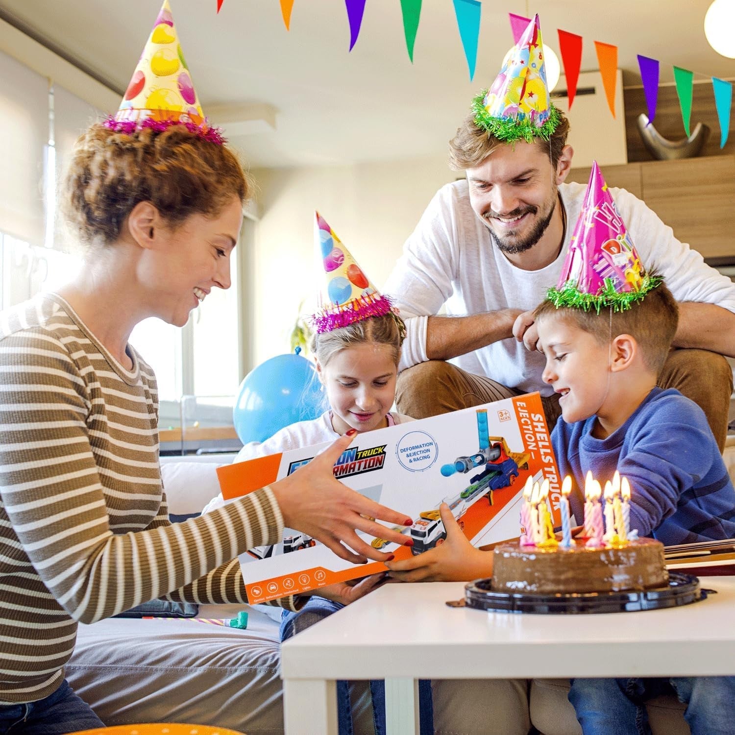 - Ejection Truck Set Toys‘: this truck toys include 1 large ejection transport truck, 2 ejection alloy racing cars, 4 soft & safe balls, a 360 degree launcher, and truck stickers. It is perfect toys for kids play with parents, brother, sister, cousin, and friends!